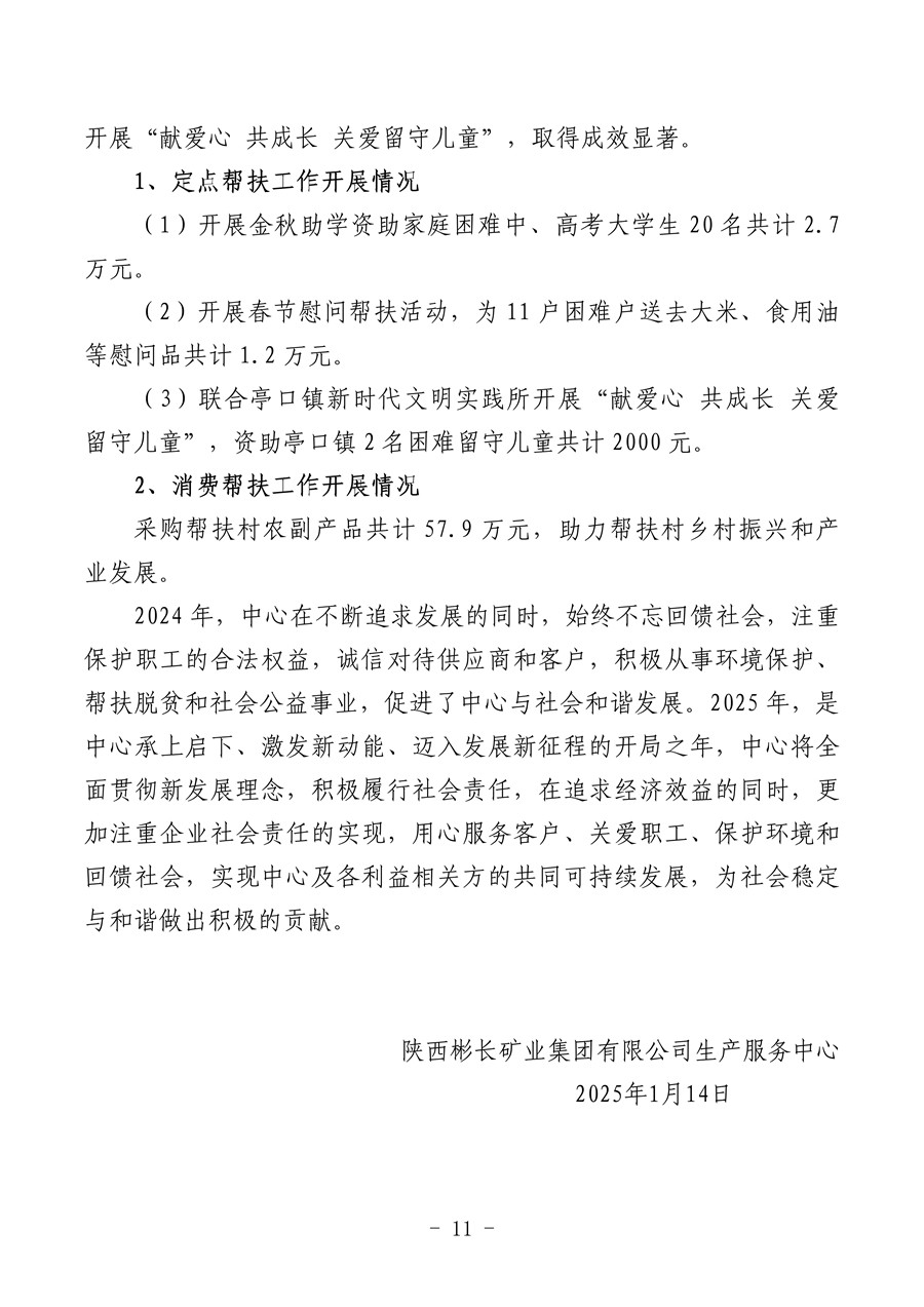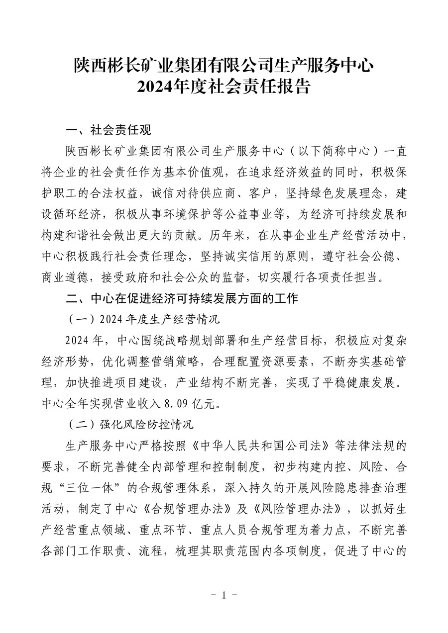陜西彬長礦業(yè)集團(tuán)有限公司生產(chǎn)服務(wù)中心2024年度社會責(zé)任報(bào)告