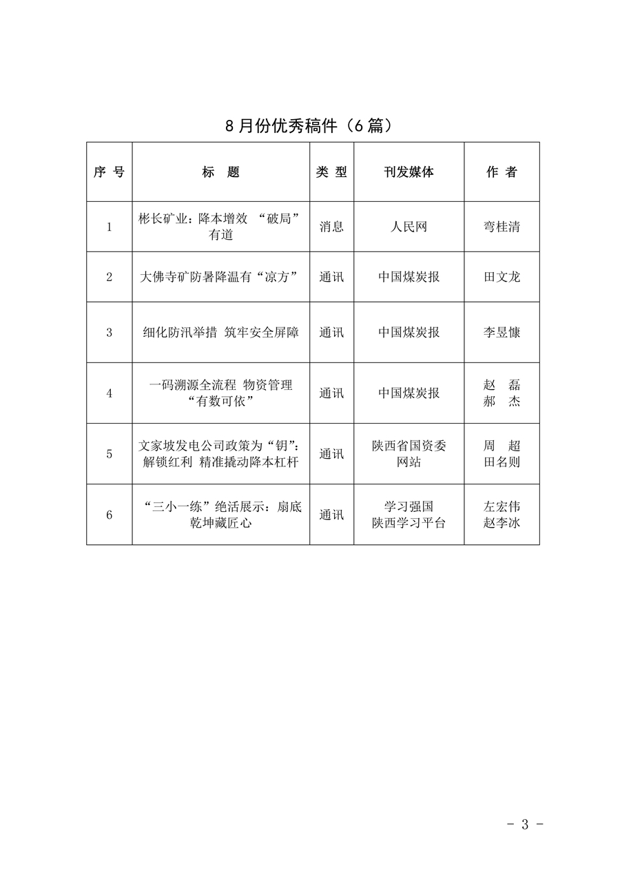 關(guān)于8月份稿件采用及優(yōu)秀稿件評選情況的通報