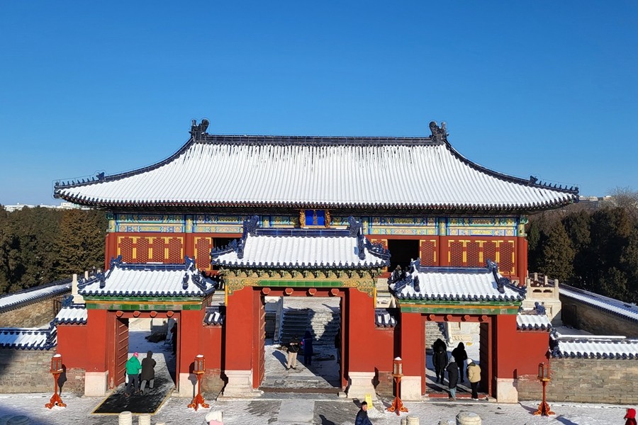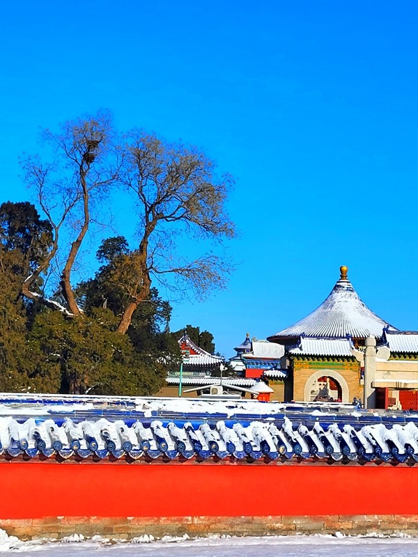 北京的冬日,天空湛藍湛藍,沒有一點雜質(zhì),陽光很是明媚;街上有雪的遺留,盡管寒風刺骨,但游人絡繹不絕,漫步在外,放飛的是無限愜意的心情。(關國鳳)