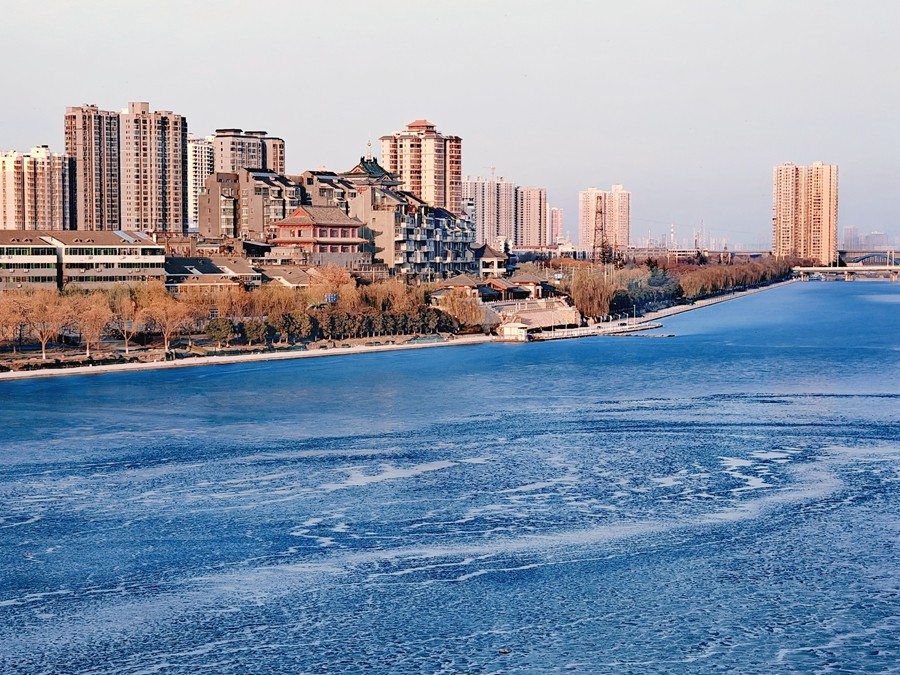 當(dāng)微風(fēng)吹過(guò),冰面就會(huì)發(fā)出清脆的聲響,仿佛在訴說(shuō)著冬天的故事。遠(yuǎn)處的高樓、冰面、橋還有那劃破平靜水面的游船,形成了一幅美麗的冬日畫(huà)卷。(胡家河礦 張寶龍)