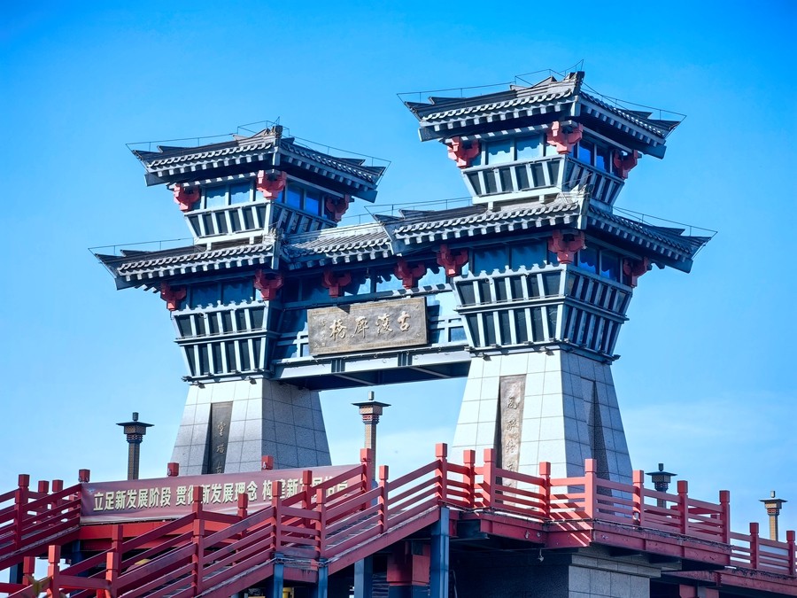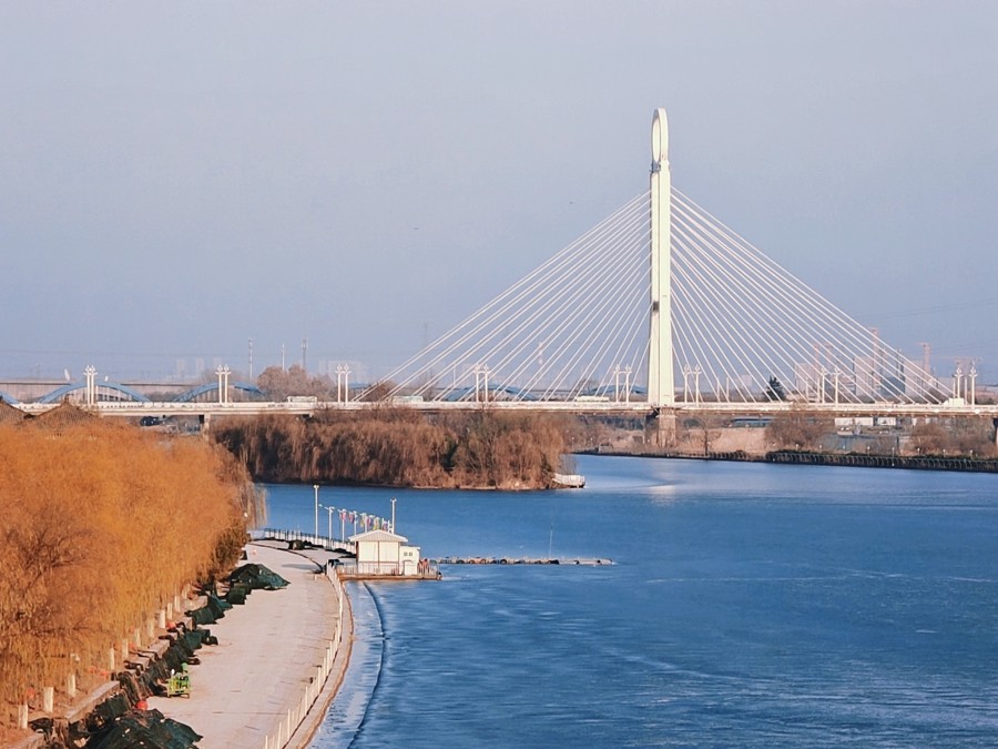 封冰岸樹(shù)還爭(zhēng)綠,凍水湖光盡放藍(lán)。漫步于古渡廊橋之上,感受這咸陽(yáng)湖冬季的別樣韻味。當(dāng)午后的陽(yáng)光灑在冰面上時(shí),那道道冰裂紋顯得格外晶瑩剔透,猶如一顆巨大的寶石。