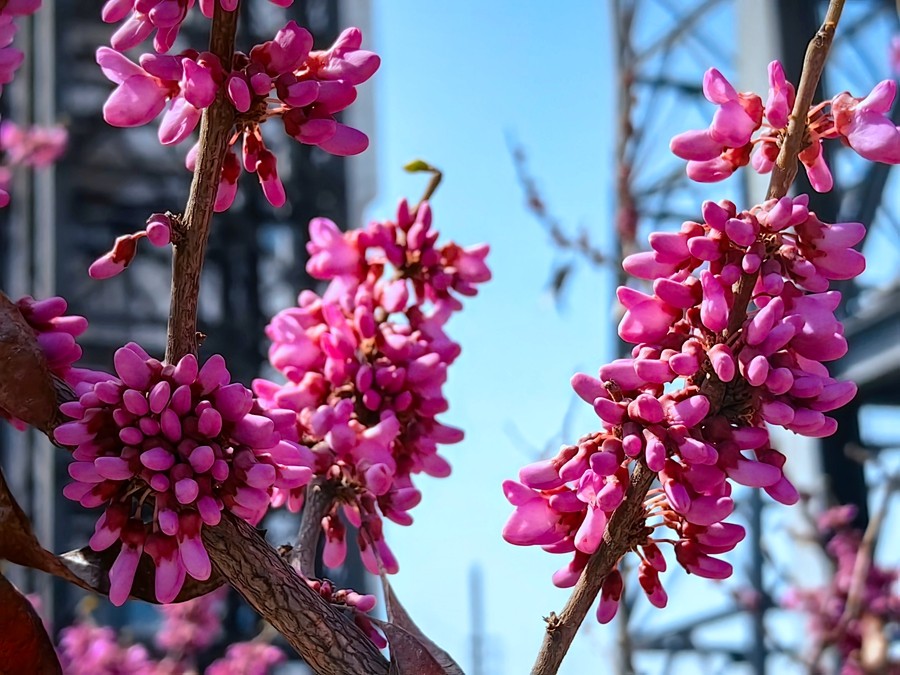 三月的胡家河礦,春色美如畫。漫步在礦區(qū)里,紫荊花、蒲公英、紫葉李等次第開放,一陣微風(fēng)吹過(guò),柳條翩翩起舞,花朵隨風(fēng)舞動(dòng),搖曳多姿。春光美、春風(fēng)柔、春花艷,人在花中走,恰似畫中游。捧起這抹春光,在馥郁醉人的花香中陶醉。(張寶龍)