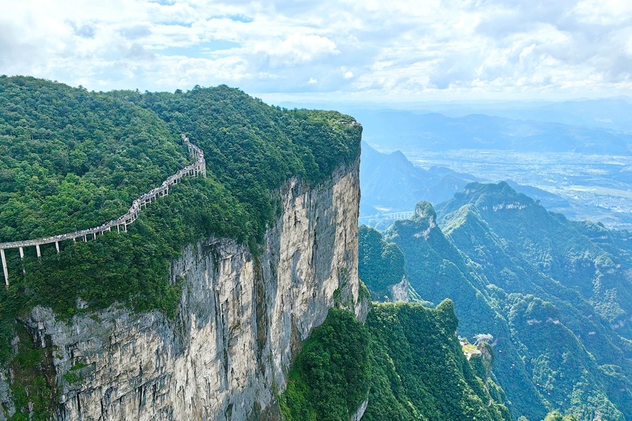 ??張家界天門山國家森林公園?位于湖南省張家界市永定區(qū),以其壯麗的山峰、險峻的懸崖和豐富的自然景觀而聞名。公園總面積達96平方公里,山頂面積2平方公里,主峰海拔1518.6米。天門山不僅因其自然奇觀天門洞而得名,還因為其山頂保存著完整的原始次生林,擁有許多珍貴的植物品種,被譽為“世界最美的空中花園”和“天界仙境”。(文家坡礦 李治學)