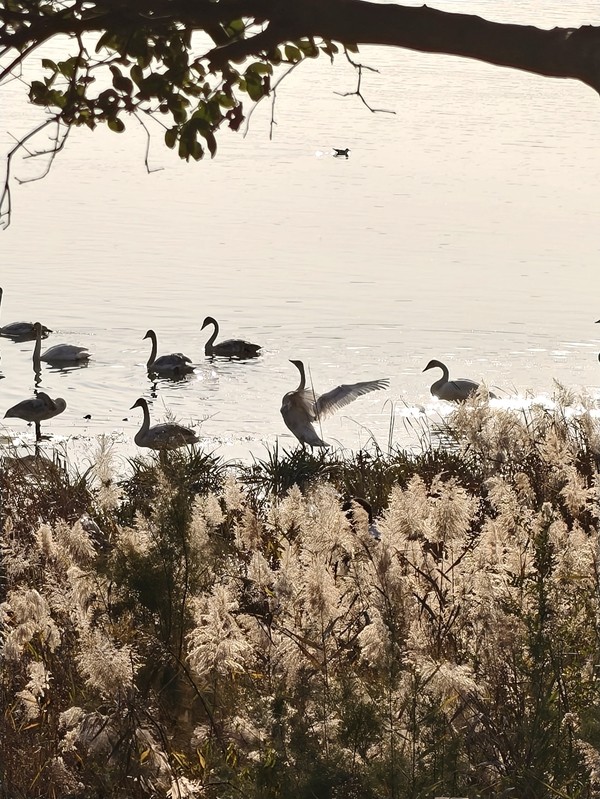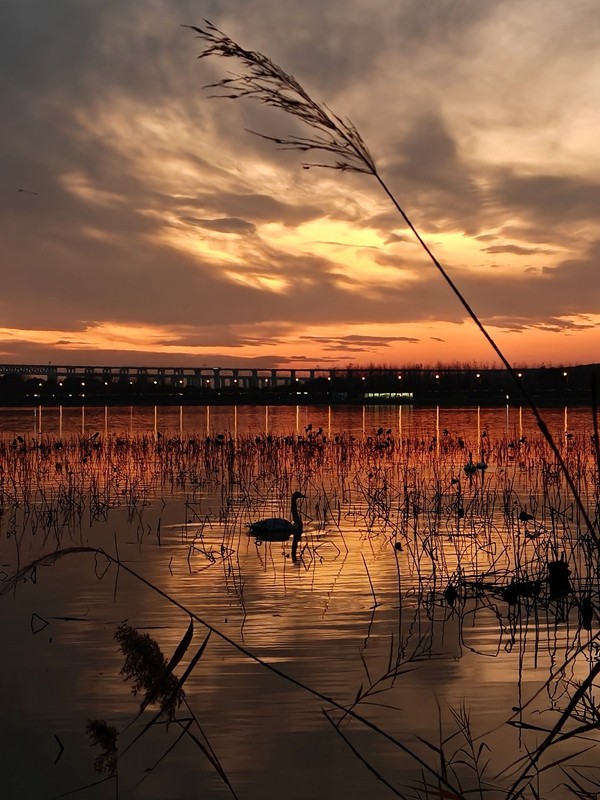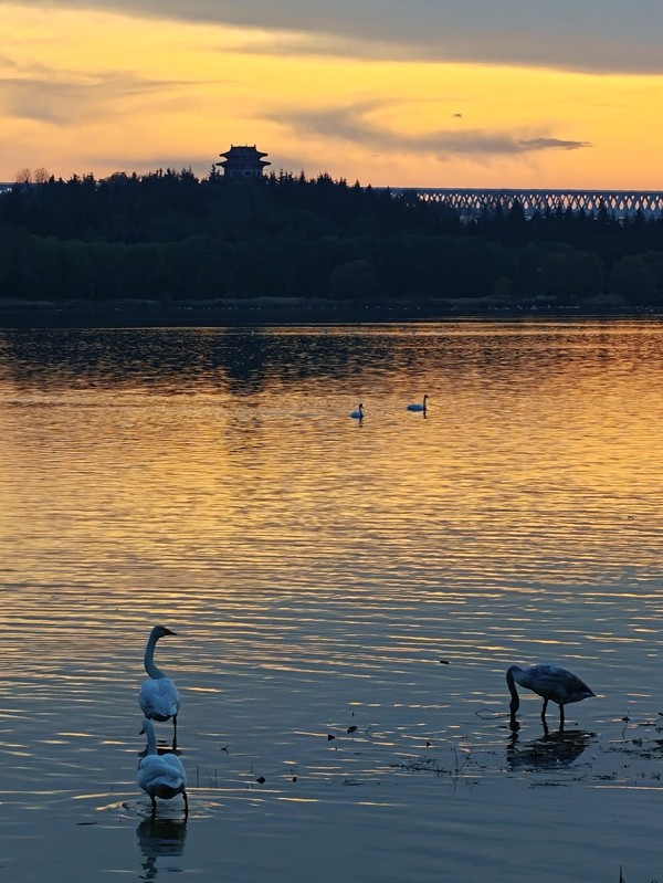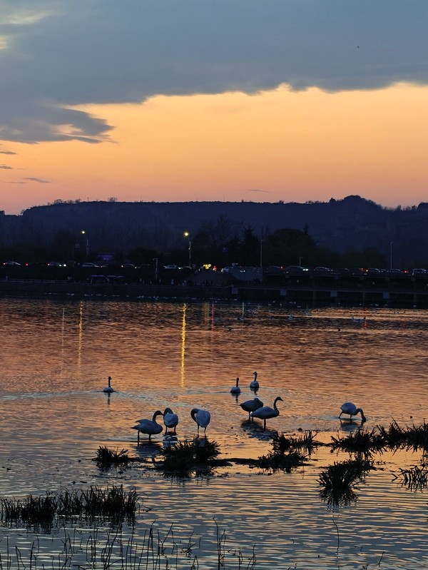 夕陽漸漸西下,三門峽天鵝湖被染成了一片橙紅色。平靜的湖面上,波光粼粼,如同灑滿了碎金。一群潔白的天鵝在湖中游弋,它們或低頭覓食,或伸長脖頸梳理羽毛,姿態(tài)優(yōu)雅。湖岸上,幾盞路燈已經亮起,點點燈光在暮色中閃爍。作為一名游客,這美好的偶遇充滿了寧靜與祥和,每一處景色都令人陶醉,讓人不禁想起王勃筆下的“落霞與孤鶩齊飛,秋水共長天一色。”(胡家河礦 張寶龍)