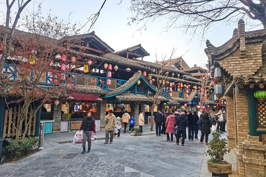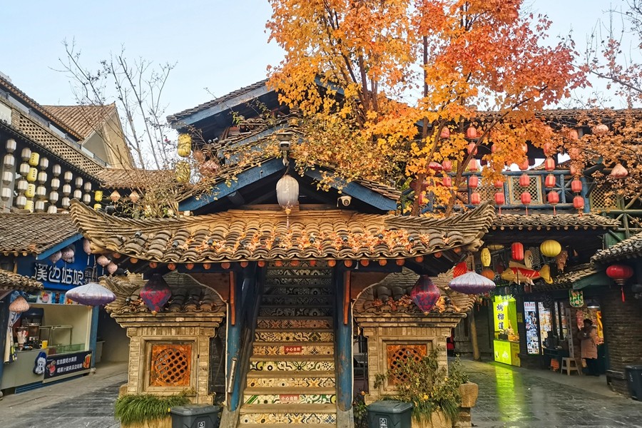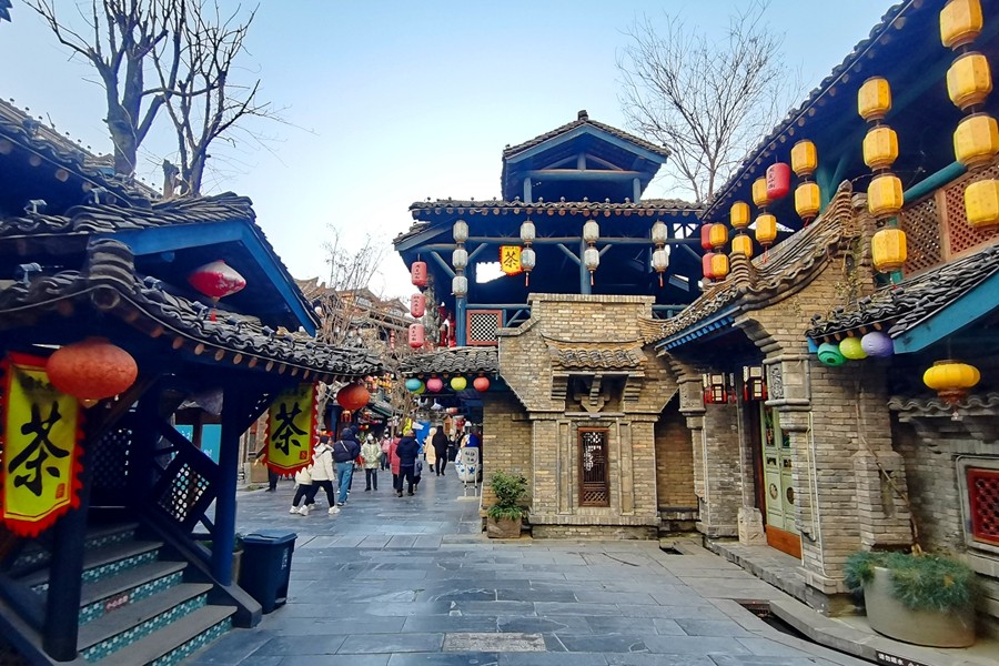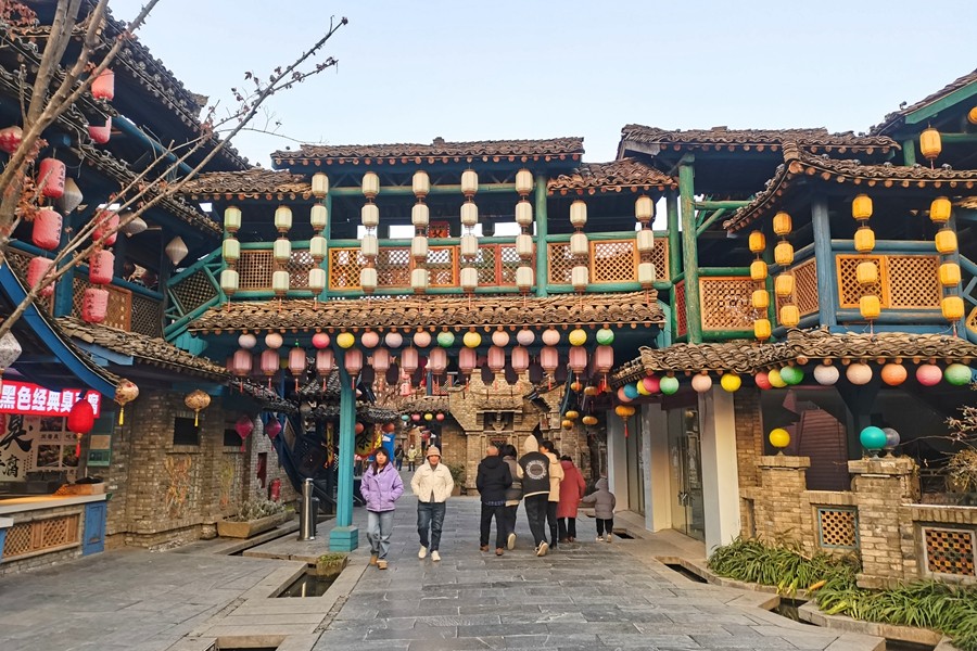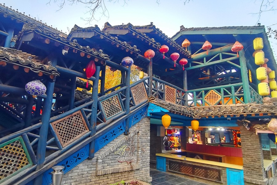 周至水街位于陜西省西安市周至縣,是國內(nèi)首家立體水景、互動式濱河生態(tài)主題公園,被譽為“最具魅力旅游攝影基地”“關(guān)中版清明上河圖”“中國北方最美水鄉(xiāng)”。其中煙火巷子的仿古建筑青磚黛瓦、燈籠高掛、古色古香。漫步街區(qū),熙熙攘攘的市井風情,煙火氣息十足。(大佛寺礦 馮春朋)