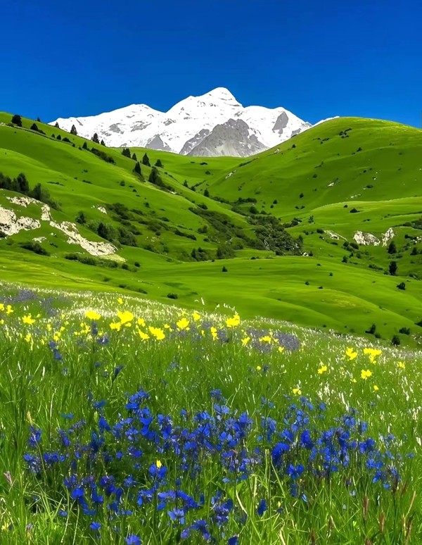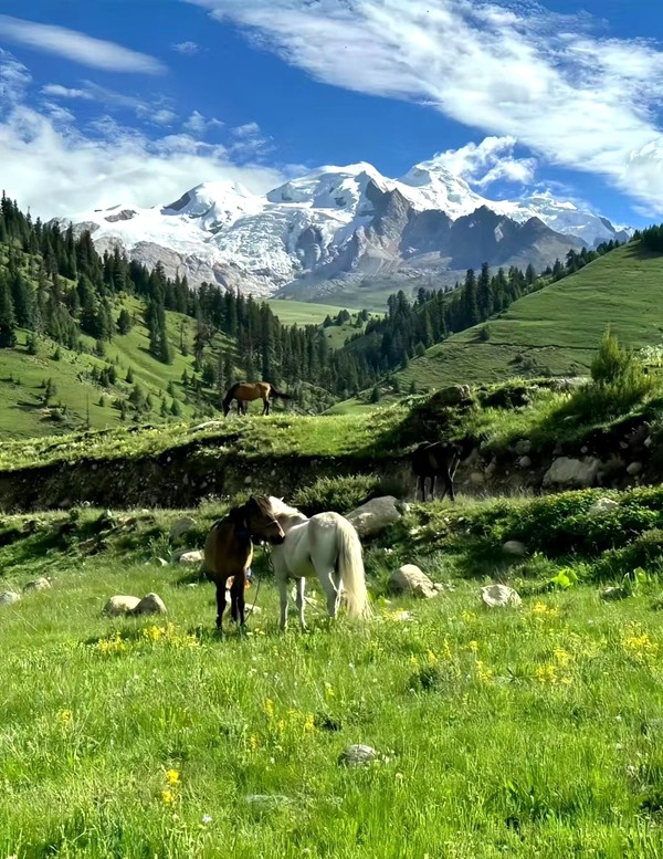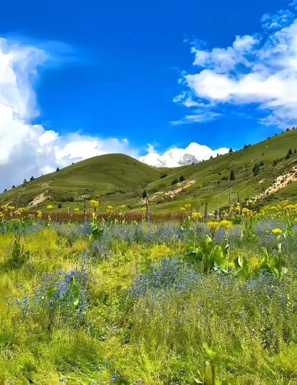格聶,這座神山矗立于四川理塘,海拔6204米,是沙魯里山脈主峰,藏傳佛教的圣地。進(jìn)入盛夏,雪山映襯著無(wú)邊的花海,冰川融水匯成清澈溪流。草甸似翠緞延展,野花點(diǎn)綴其間,野馬悠閑漫步,如一幅巨美的畫(huà)卷鋪展開(kāi)來(lái)。(鄭小楠)