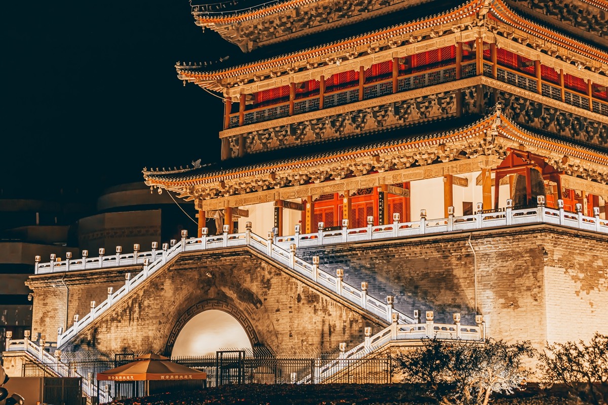 西安鐘樓坐落于西安市明城墻內(nèi)四條大街交匯處,是中國(guó)現(xiàn)存規(guī)模最大、保存最完整的鐘樓。它如一枚沉穩(wěn)的印章,穩(wěn)穩(wěn)蓋在西安的城市心臟,成為街巷間最醒目的標(biāo)識(shí)。當(dāng)暮色四合、華燈初上,鐘樓就褪去了時(shí)光的厚重,暖黃燈光從窗欞間漫溢,為青磚鍍上溫柔金邊,檐角原本威嚴(yán)的獸首,在夜色里也添了幾分憨態(tài)。駐足樓下,抬頭可見鎏金寶頂在燈影中微光閃爍,滾滾車流環(huán)繞其行,恍惚間便能觸碰到這座城從長(zhǎng)安到西安的千年流轉(zhuǎn)。(小莊礦 雷智勇)