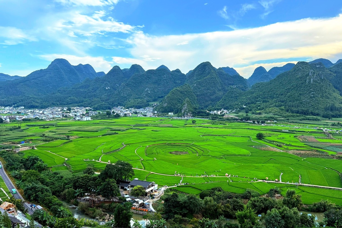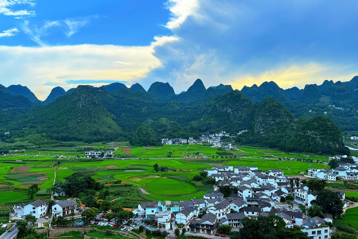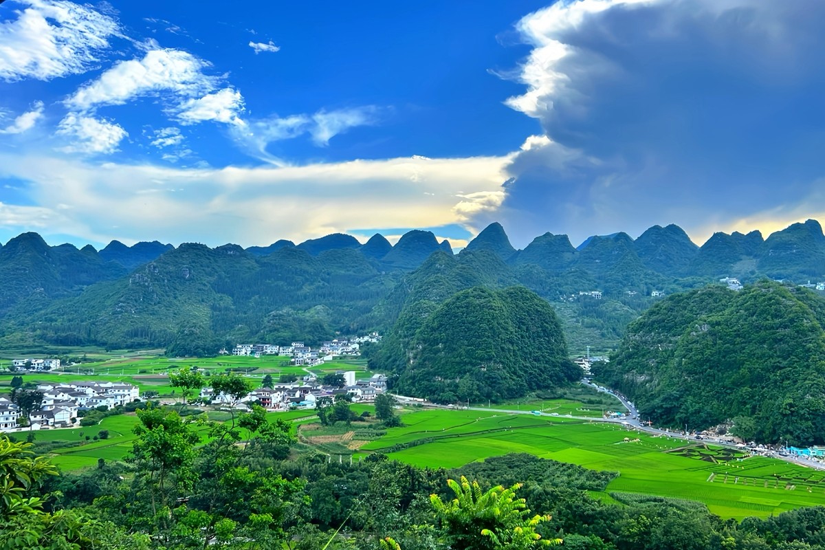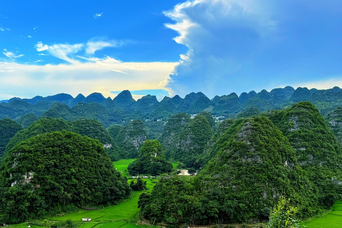 萬峰林位于貴州省黔西南布依族苗族自治州興義市,是世界上最大、最典型的喀斯特峰林地貌之一,被譽(yù)為“天下奇觀”。這里群峰連綿數(shù)百里,形態(tài)各異,大小峰林錯(cuò)落有致,宛如綠色的海洋。山間村寨點(diǎn)綴其間,梯田層層疊疊,與碧綠的田園交相輝映,構(gòu)成一幅獨(dú)特的田園畫卷。(電力公司 張世博)