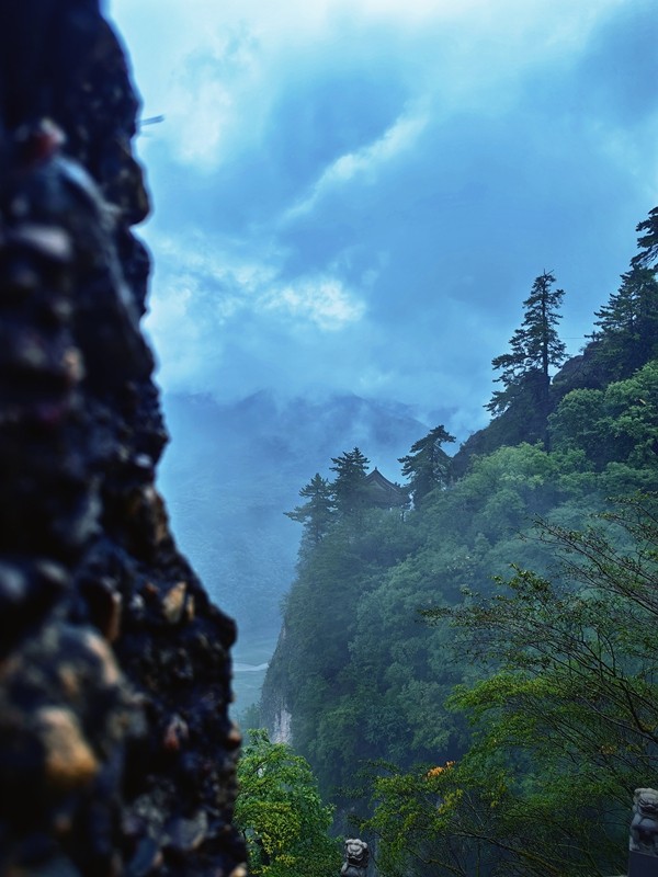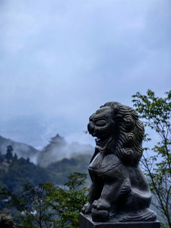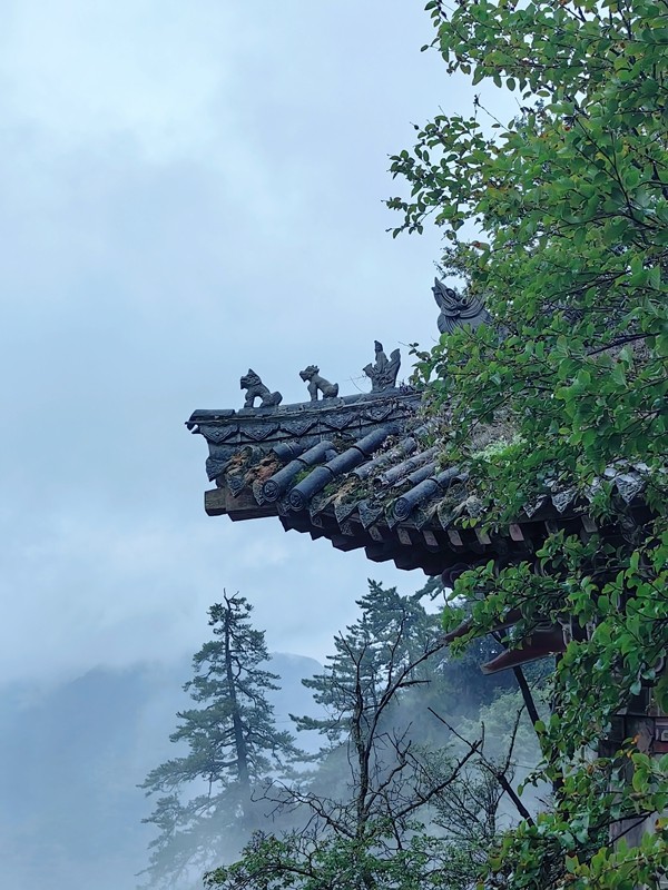 崆峒山的綠,是層層疊疊的。樹木擠滿山巒,像海浪一樣起伏,深綠、淺綠交錯,鋪滿整個視野。而更讓人驚嘆的是云海——乳白色的云霧翻涌流動,時而淹沒山峰,時而散開一角,露出陡峭的崖壁和古老的建筑。那些山峰仿佛在云海中漂浮,成了一座座懸空的仙島。
