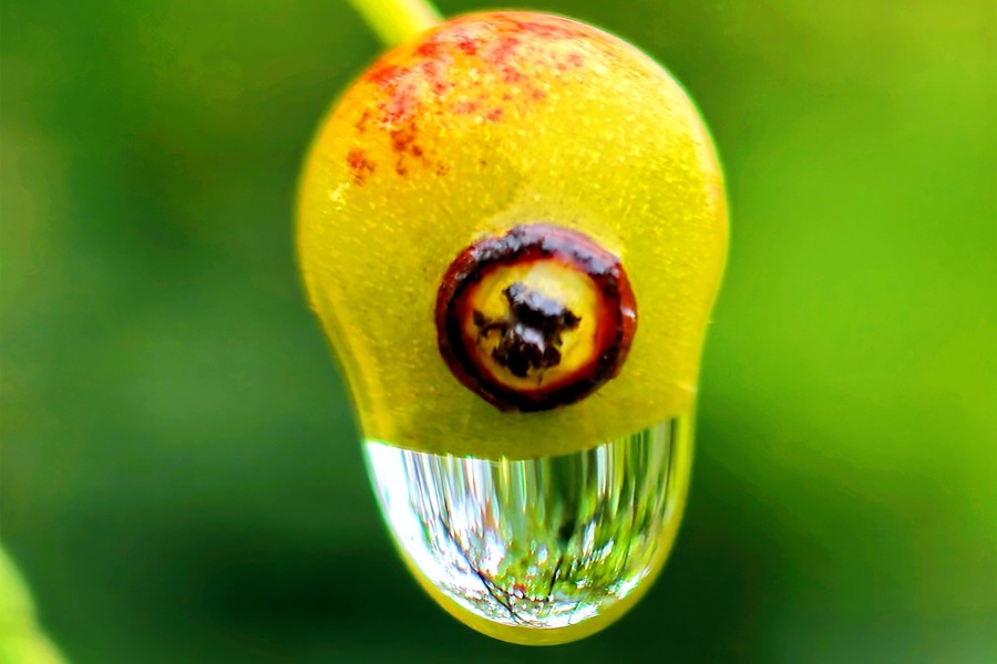 劉天祿攝影:雨歇山青景色幽 葉端露珠點點秋