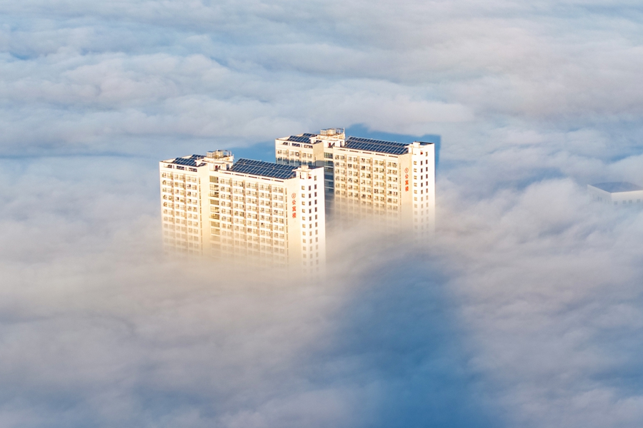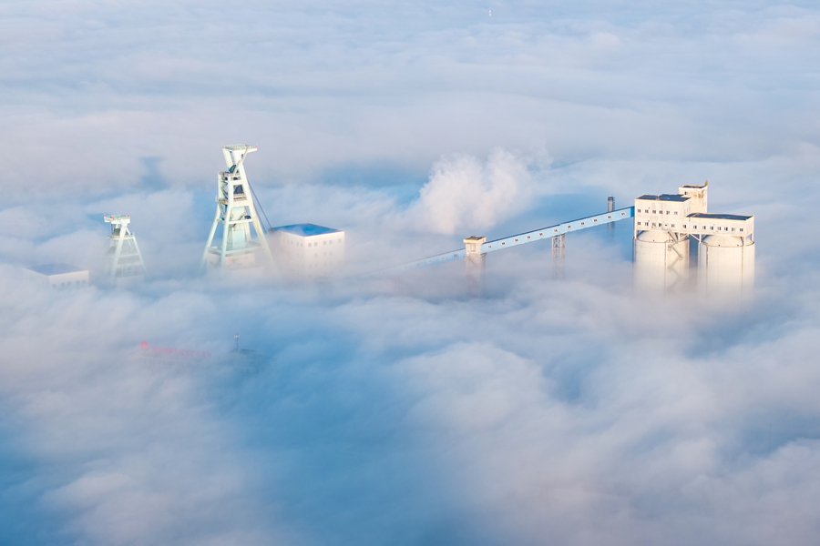 清晨的陽(yáng)光灑在彬州新民塬上,云霧繚繞讓山脊的輪廓被柔化了,在眼簾中若有若無(wú),仿佛一幅酣暢淋漓的淡墨寫(xiě)意。井架、煤倉(cāng)更顯高峻,通過(guò)航拍視角,記錄下工業(yè)園區(qū)內(nèi)建筑在云海茫茫間似隱似現(xiàn)的景象,萬(wàn)籟俱寂,唯有云霧的寒涼沁入肌膚,如同遺世獨(dú)立的仙境,隔絕了塵世一切喧囂。(文家坡礦 劉昊)