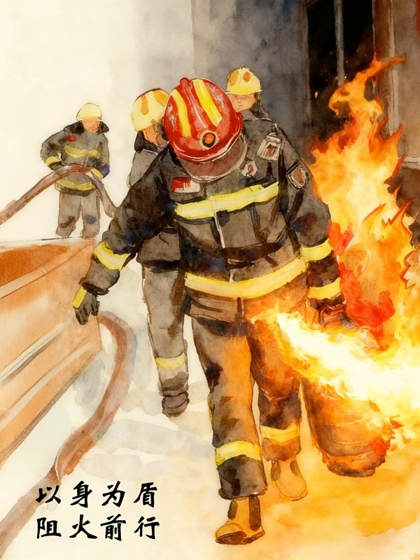 沈淵博繪畫:向險(xiǎn)而行 守護(hù)生命——致敬烈焰中的逆行者