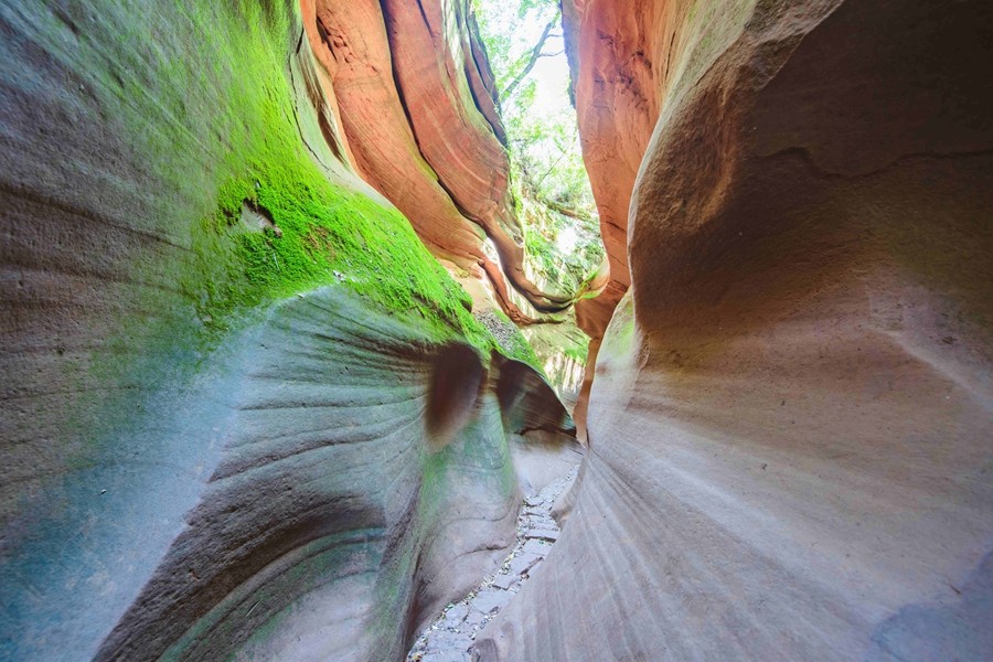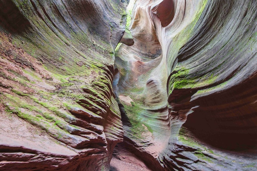 陜北黃土之下,藏著延安甘泉雨岔的地質(zhì)奇觀。狹窄峽谷間,巖壁被流水雕琢成柔美曲線,紅砂巖在光影中暈染出深淺交織的肌理。陽光穿透裂隙灑落,斑駁光影與巖壁紋路相擁,似大自然揮毫的抽象畫作。每一道褶皺都沉淀著歲月,每一縷光線都跳動著生機,行走其間,宛若闖入被時光偏愛的秘境,沉浸式感受天地造化的鬼斧神工。(小莊礦 雷智勇)