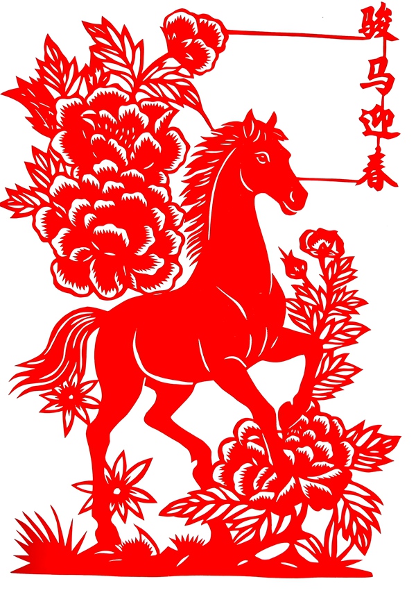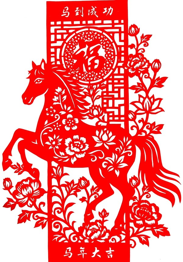 職工刻紙:福馬迎春 馬年大吉